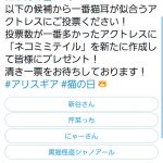 【アクセ配布】一番猫耳が似合うアクトレスの最多投票は「黒猫怪盗シャノアール」だった模様!しかし、シャノアールがいないため代理でにゃーさんに「ネコミミテイル」がプレゼントされたぞwww
